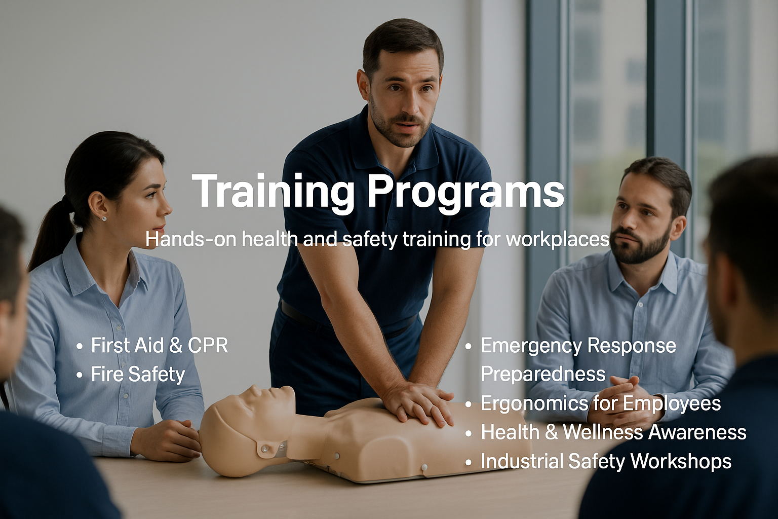 First Aid, Fire Safety, Ergonomics, Health Awareness and Emergency Response training.
